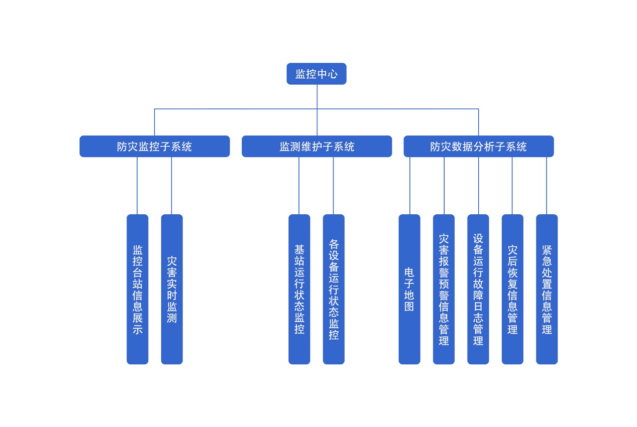 監(jiān)控中心能夠?qū)Ψ罏?zāi)監(jiān)測區(qū)域內(nèi)進(jìn)行全方位的災(zāi)害監(jiān)測及預(yù)警,對各個監(jiān)測設(shè)備進(jìn)行全方位、多層次的監(jiān)控和管理。對監(jiān)控設(shè)備運行狀態(tài)實時監(jiān)測,同時對接收到的報警、預(yù)警信息進(jìn)行展示,實現(xiàn)電子地圖自動定位、多點災(zāi)害預(yù)測定位,自動化災(zāi)害緊急處置、設(shè)備故障日志查詢、災(zāi)害報警預(yù)警數(shù)據(jù)查詢導(dǎo)出、實時監(jiān)測等功能。
